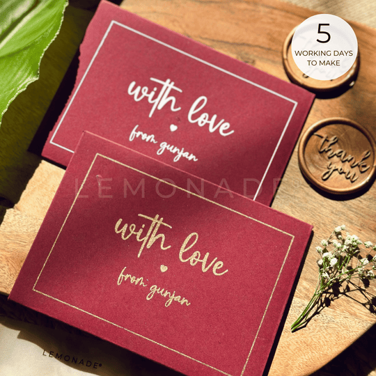 We got customised envelopes and cards from Lemonade, and it made gifting so much easier. The quality and print are super classy and beautiful. As a couple who often attends weddings and parties, we love ordering personalised gifting items from them and we’ll definitely be getting our next batch from Lemonade too!
